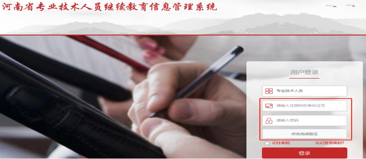 (2)登录河南省专业技术人员继续教育信息管理系统,如下图所示: